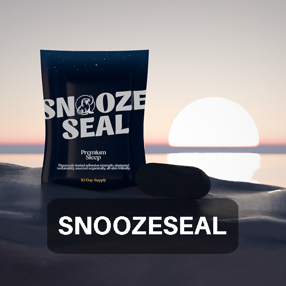 Animated renders of snoozeseal tape, a product that aims to better your sleep.