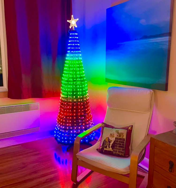 Illuminated Christmas trees from Festitech that provide a decorative light display that can be controllable from a mobile device.